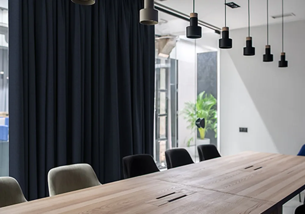 Ofis akustik perdeler, toplantı ve çalışma alanlarında ses kontrolünü sağlayarak dikkat dağınıklığını azaltır. Yoğun ve çok katmanlı kumaş yapısı sayesinde konuşma seslerini dengeler, ortam akustiğini iyileştirir. Modern tasarımlarıyla ofis dekorasyonuna uyum sağlarken daha konforlu bir çalışma atmosferi oluşturur.